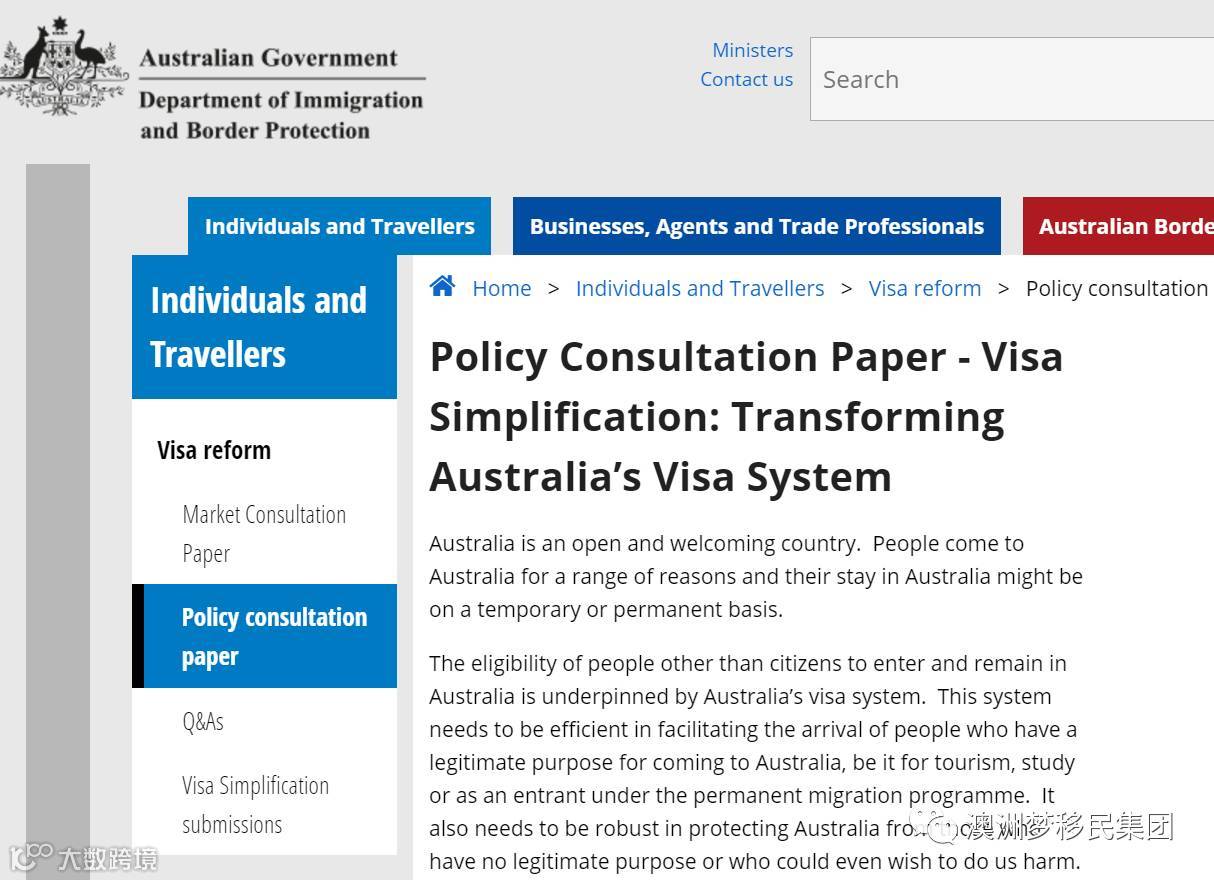 关于科技手段介入澳大利亚签证系统方面征求意见为: