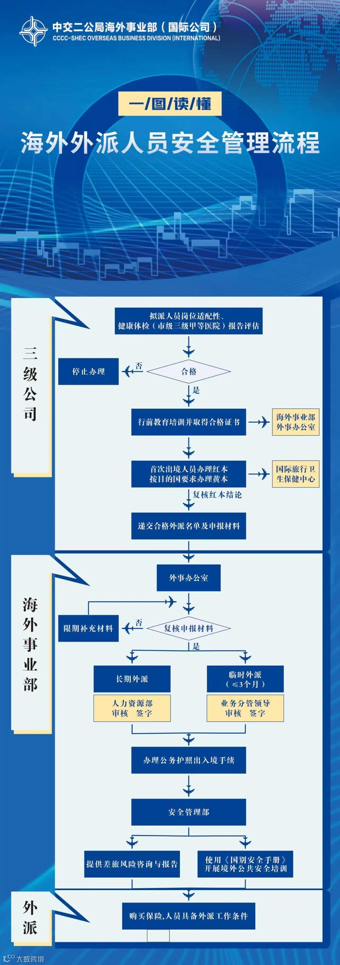 为解决海外事业部与局属三级公司在人员外派管理中流程不明、衔接不畅的问题,海外事业部依托“一件事”全链条工作方法,将安全生产“十二个到位”及“标准统一、合规合理”的理念贯穿外派人员全过程管理,统一规范行前审批流程,有效支撑各三级公司安全“走出去”、稳健“扎根海外”,为二公局海外业务高质量发展提供坚实保障。