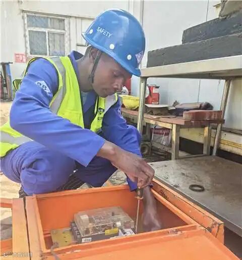 随着项目的推进,Titus的技能也在不断提升。他开始接触强电、弱电系统,从简单的照明电路维修,到复杂的设备电路调试,每一次挑战都让他离梦想更近一步。在拌合站修理工作中,面对庞大复杂的设备电路故障,他凭借着扎实的理论基础和不断积累的经验,冷静分析、逐步排查,最终成功解决问题,保障了拌合站的正常运转。而对于网络和监控这类精细的弱电设备,他同样游刃有余,用精湛的技术确保其精准度,为工程质量把控贡献力量。