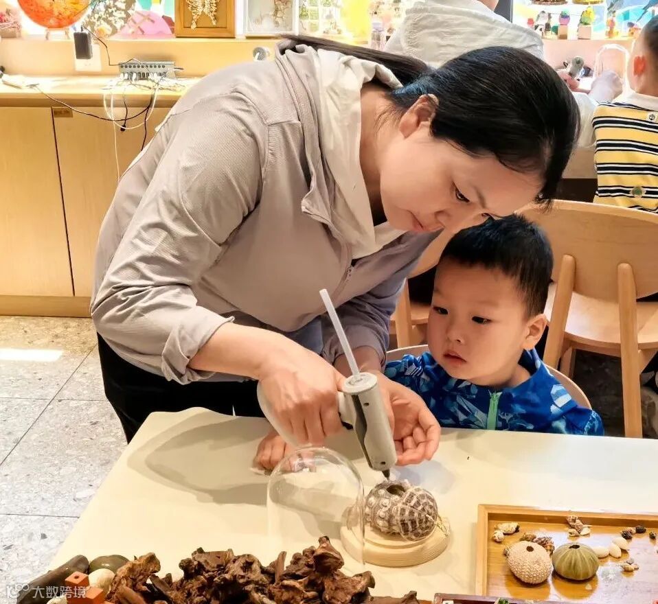 在海胆小夜灯DIY制作现场,指导老师介绍完小夜灯的制作过程后,小朋友们迫不及待地打开材料包开始动手实践。在爸爸妈妈的帮助下将一个个小海胆壳小心翼翼地重叠固定,再添加自己喜爱的小装饰,每个动作都格外认真、细致。经过孩子们认真地制作,一盏盏明亮的海胆小夜灯展现在眼前,小朋友们满心欢喜地将亲手制作的小夜灯举到胸前,脸上露出满满的自豪感。