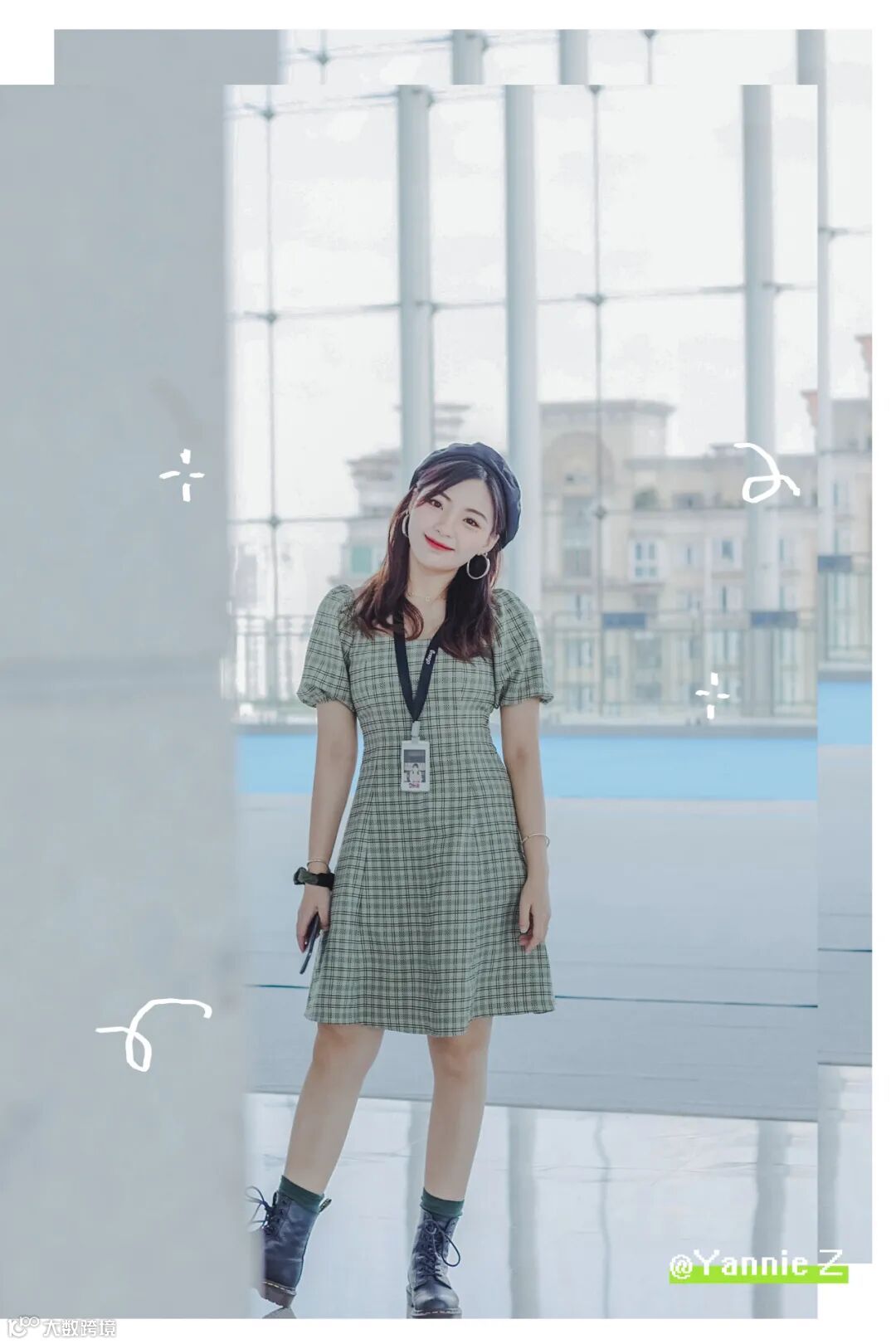 浅绿格纹满满的夏日感,狠下心搭配马丁靴+小画家帽,今日份搭配作业完成!
