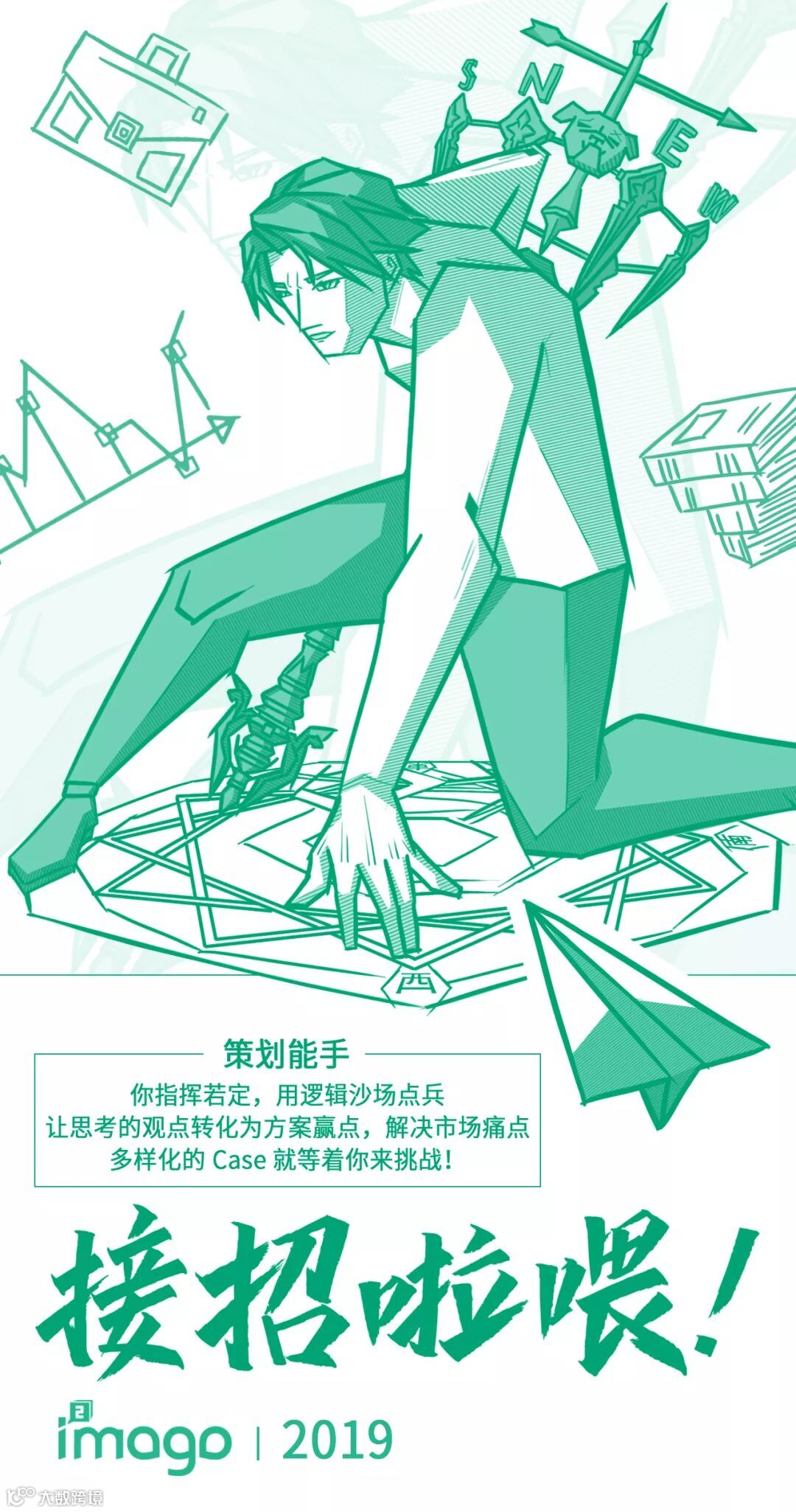 把控策略方向,辅助创意的发想和落地,撰写与整理策划方案;