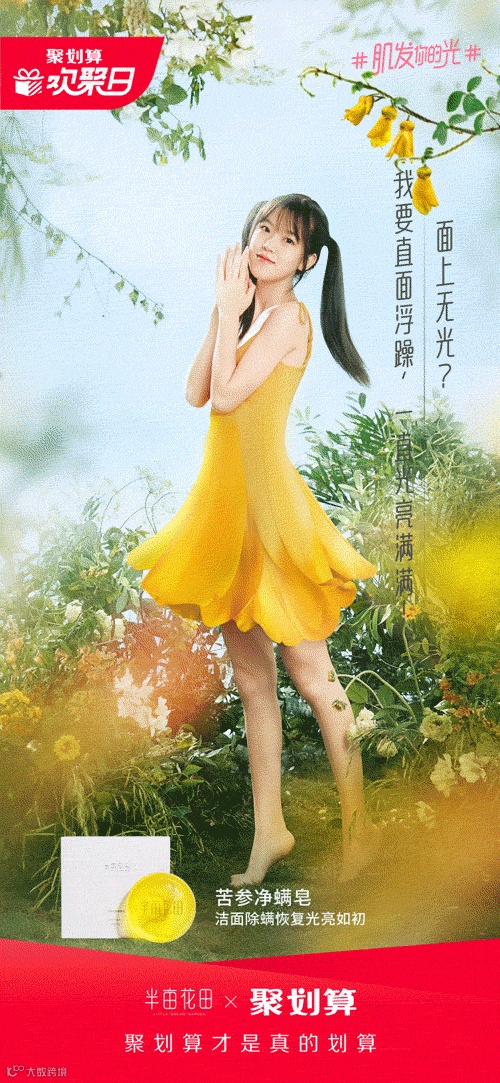 本次天猫聚划算-欢聚日专场里,我们不仅助力半亩花田销售爆发,更在这个营销契机中,为品牌释放出理念主张,打出品效合一的一仗。并在疫情期间,无惧有限的条件,肌发创意无尽的光。