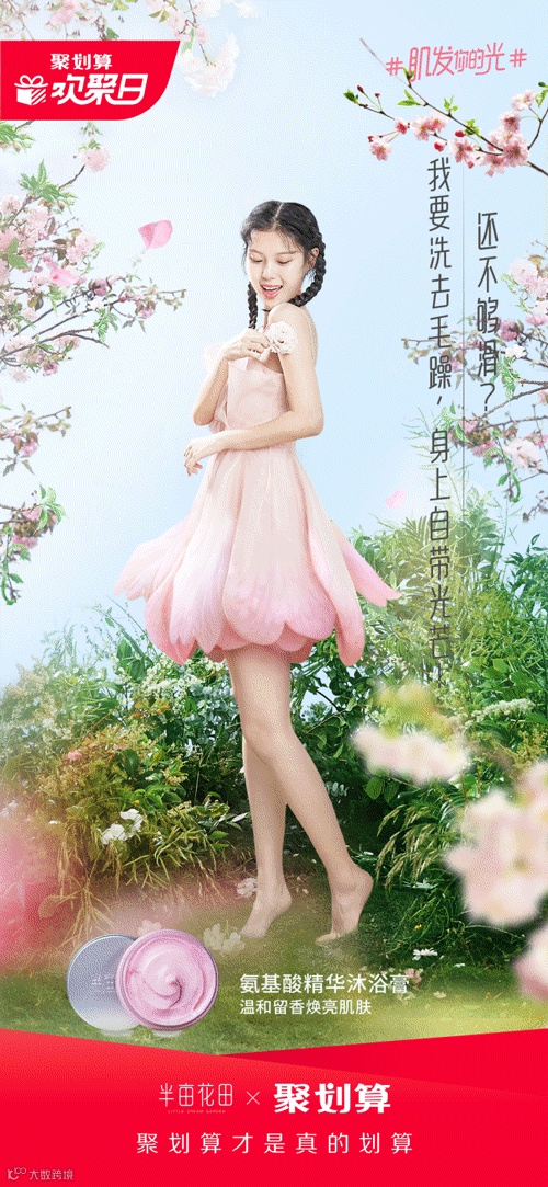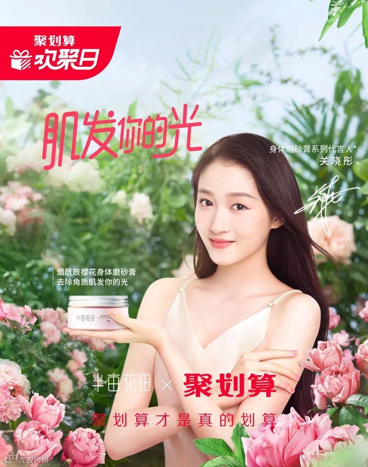 本次欢聚日战场,更有大咖加持,关晓彤为身体磨砂膏系列代言人、鞠婧祎担任烟酰胺樱花身体磨砂膏代言人,她们以自身青春活力的形象,向女孩们亲身诠释品牌理念, 为半亩花田欢聚日 “肌发你的光” 发声。
