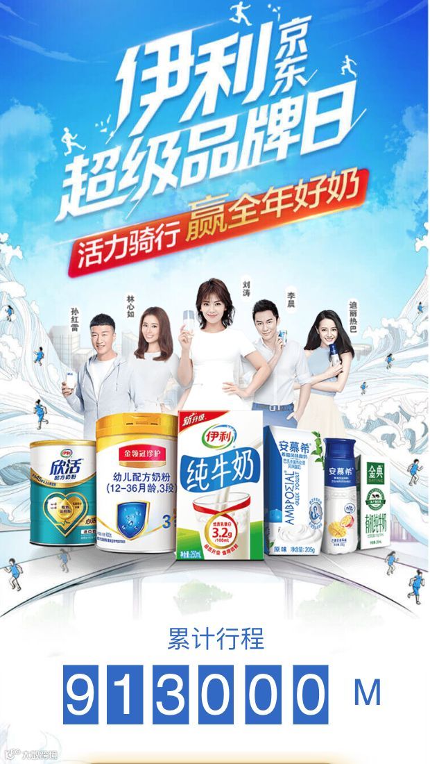 联合北京地区的ofo小黄车,在9月13日爆发日当天参与骑行,即可获得伊利京东超品日活动优惠券。为了加深消费者对于超品日的印象,我们特意设定了913KM作为目标里程数:当所有活动参与人总里程累计骑行达到913KM,立即解锁超品日终极优惠!