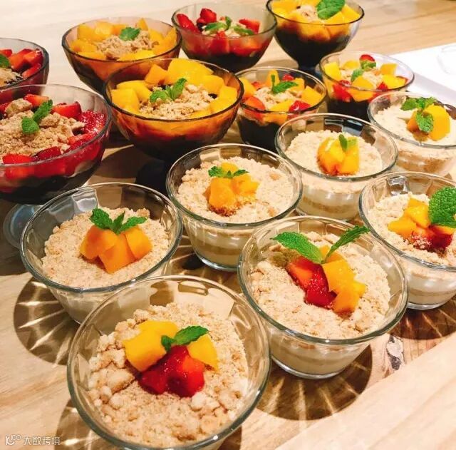 这款木糠蛋糕杯,冰淇淋的香甜混合着木糠酥松的口感,入口美好胜似初恋的味道,芒果和草莓的点缀,仿佛在向你招手“快来和我约会呀!”
