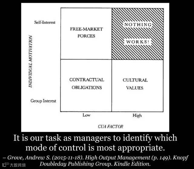如果就公司的业务增长和技能要求画一个四象限图,分别包括平稳发展、高速增长,确定性强、动态变化,只有当业务处于平稳发展期且技能要求确定性强这一象限是最适合运用KPI来管理的,以明确、不变的目标来稳健提升公司的竞争力。