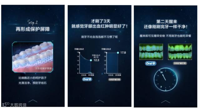 小编又发现,牙膏设计配色三要素:泡泡,波浪,水花。这样的设计没有错,但是消费者见多了这样的页面,自动会联想到自己之前购买的牙膏,要想提升产品在消费者心中的价值,必须打破这样的设计。