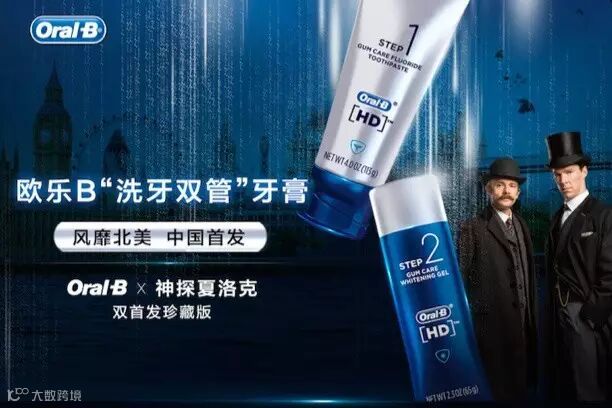 ‘洗牙双管’这个项目就厉害了,找到了宇宙级IP夏洛克进行合作。对于夏洛克的脑残粉来说,牙膏的价值可能是二三十元,但是夏洛克却是无价的。同时,夏洛克和华生的黄金组合,也强化了牙膏‘双管配合’的印象。