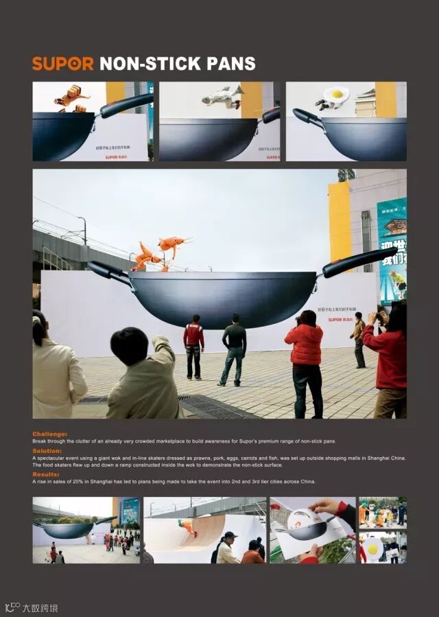 商业广告的双赢案例,既能吸引眼球的方式去放大产品的优势,又能以精准的创意去转化消费者对“不粘锅”的想象。