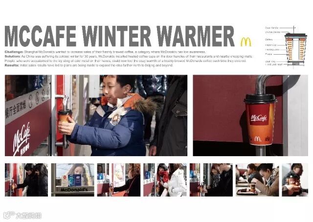 对于咖啡很多人可能直接想到“提神”“美味”“品位”等,但从这个案例能看到军爷是如何 “以人为本”地用创意去改变人的感受和生活方式,也恰好体现快餐文化亦可有细致入微且人文情怀的好案例。