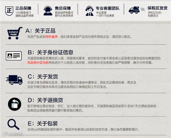 执行:准备、针对物流通关、隐私信息保障、货品保障、售前售后等服务保障乃至完整的海淘购物流程进行简明扼要的解释,有助于打消消费者的顾虑,进一步驱动购买。