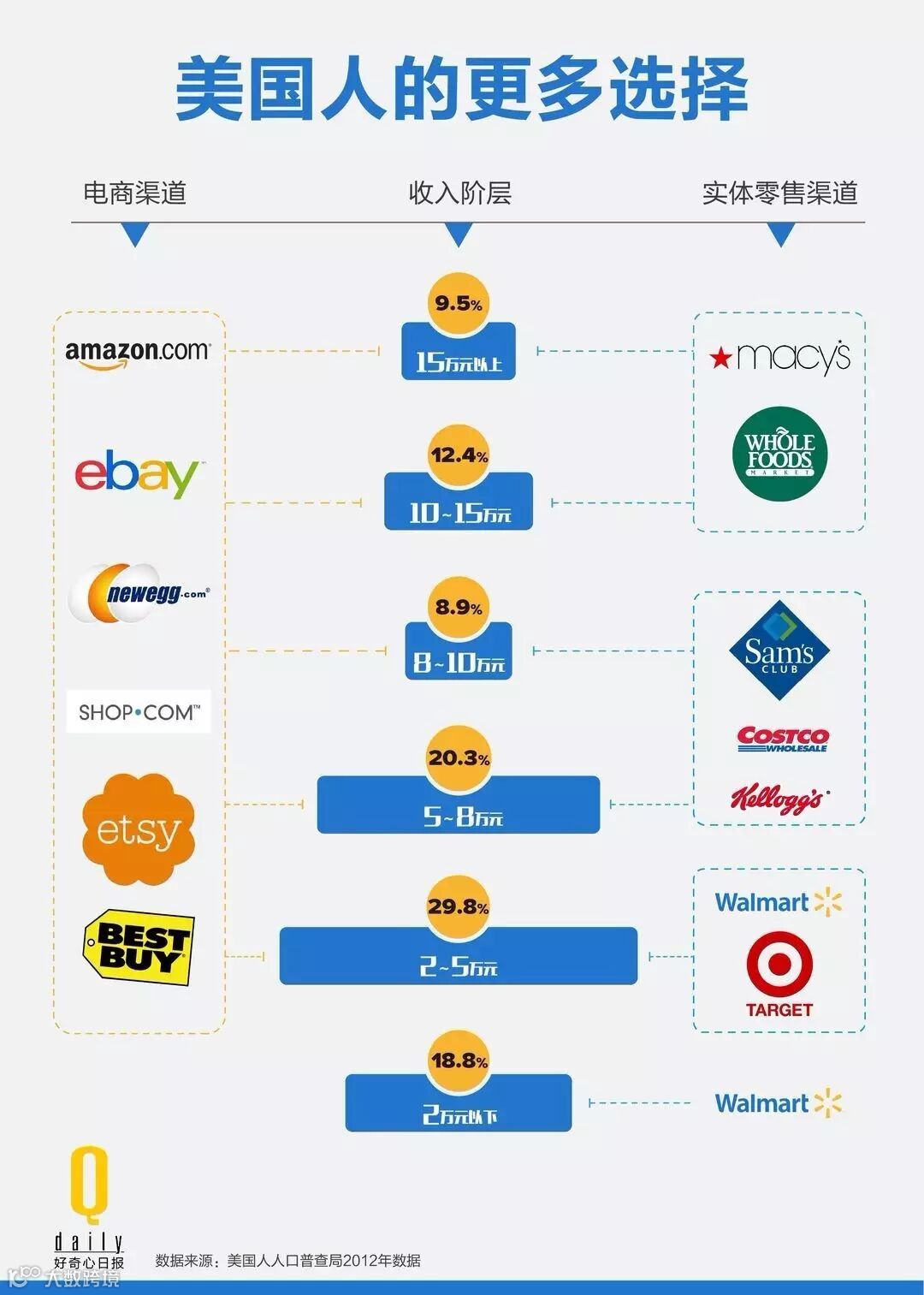 在美国,由于财富的流向发生了变化,过去10 年间沃尔玛的消费者也从广义上的“中产阶级群体”,变成了收入更低、更看重性价比的“底层中产阶级”。