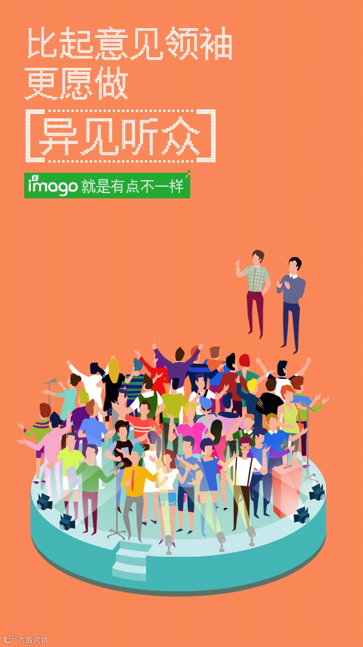 所有有异见的,都欢迎表达意见。与生俱来的互联网基因,让i2mago不做“一言堂”。无论是火力全开的头脑风暴,还是节操满地的拍桌吐槽,i2mago从来无视职衔的高低之分,放任不同维度的思维肆意交锋。