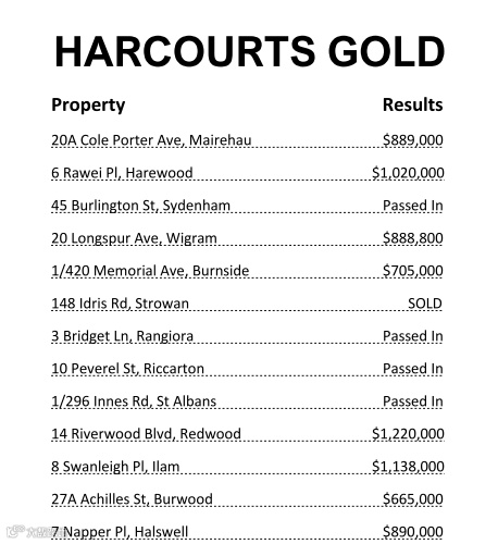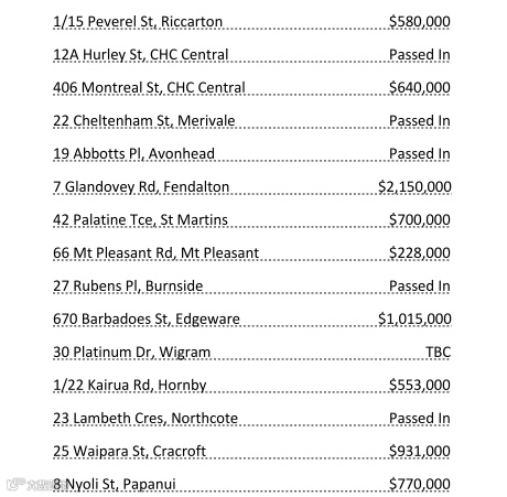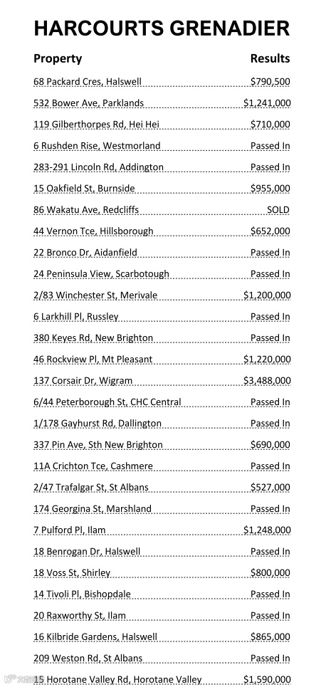以上数据仅为Harcourts gold, Harcourts Grenadier和Bayleys Christchurch 公布的Auction Results(拍卖时间为27/11) 。数据持续更新,敬请期待!如果您想了解更多信息或是以上房产价格,请后台私信我们,谢谢!