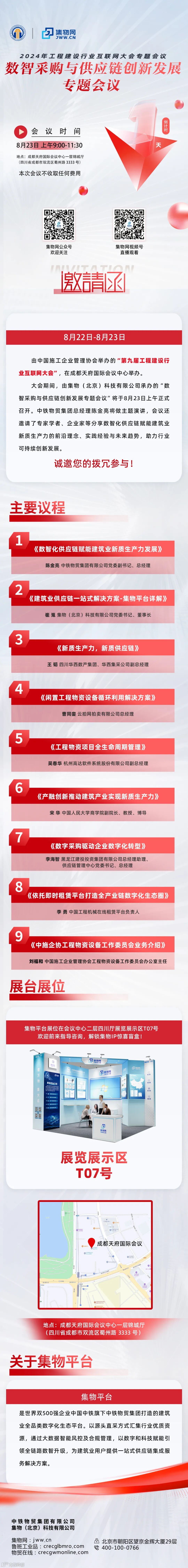 活动邀请·8月23日 | 第九届工程建设互联网大会·数智采购与供应链创新发展专题会议即将盛启!