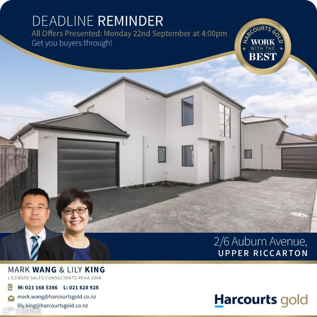 导读:房产限期销售邀请函 2/6 Auburn Avenue, Upper Riccarton