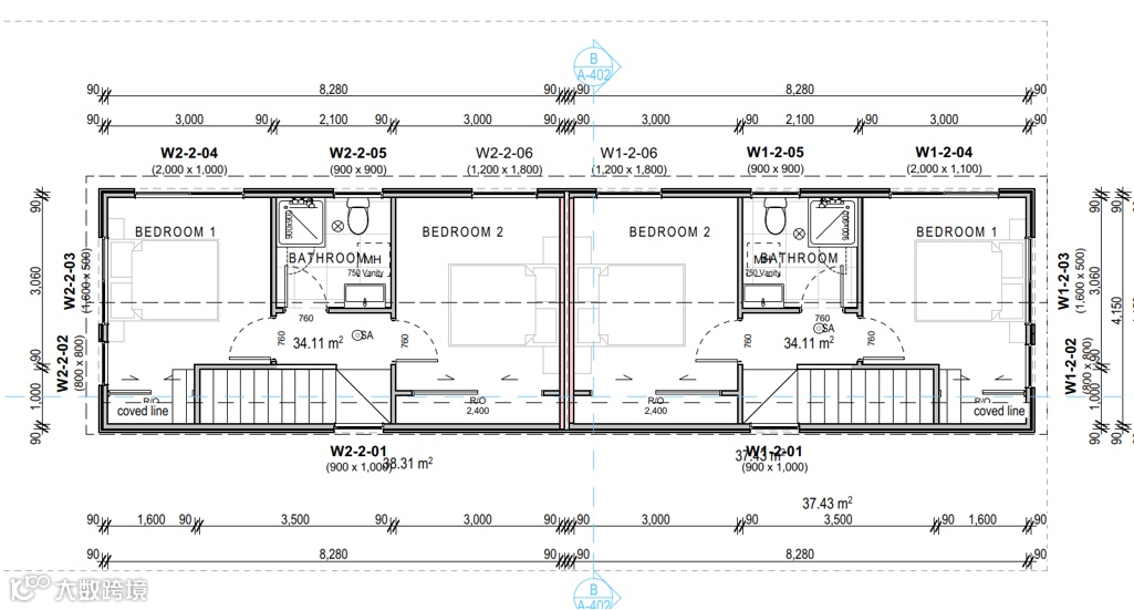 单元 1 - 2 卧室 | 1 浴室 | 2 个卫生间 | 1 个开放式停车位