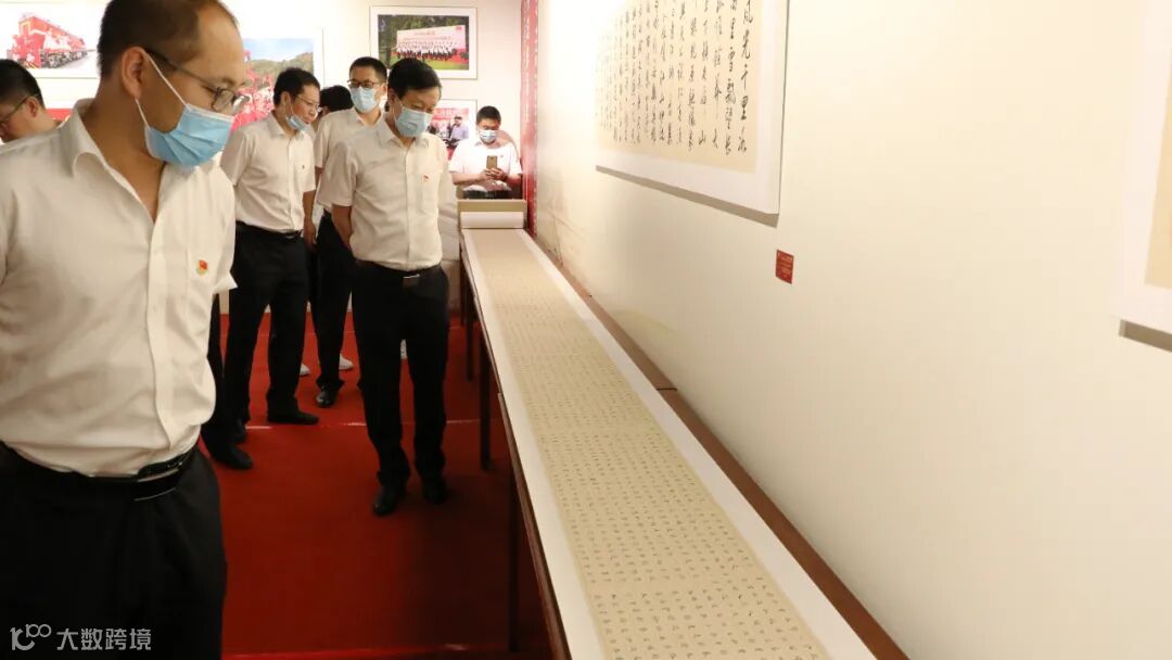 展馆内一张张照片,一幅幅书画作品生动再现了中国中铁在中国共产党领导下走过的光辉历程,展现了中铁儿女栉风沐雨、砥砺奋进的创业精神。其中,一副由中铁物贸周建民老师倾心创作的长达50米的《中国共产党章程》长卷引来大家驻足观赏和交口称赞。