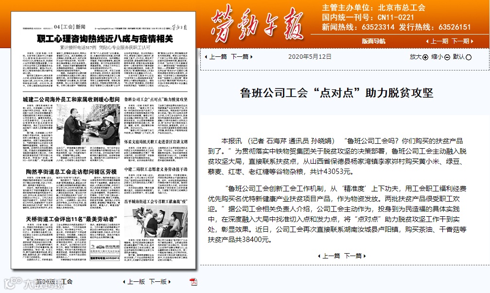 【劳动午报】鲁班公司工会“点对点”助力脱贫攻坚