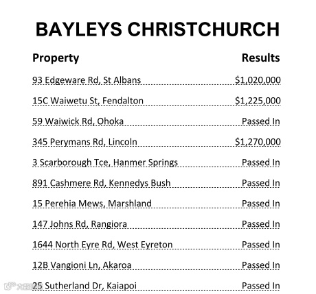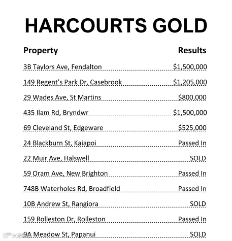以上数据仅为 Harcourts Gold、Harcourts Grenadier和 Bayleys Christchurch 公布的Auction Results(拍卖时间为13/2)。数据持续更新,敬请期待!如果您想了解更多信息或是以上房产价格,请后台私信我们,谢谢!
