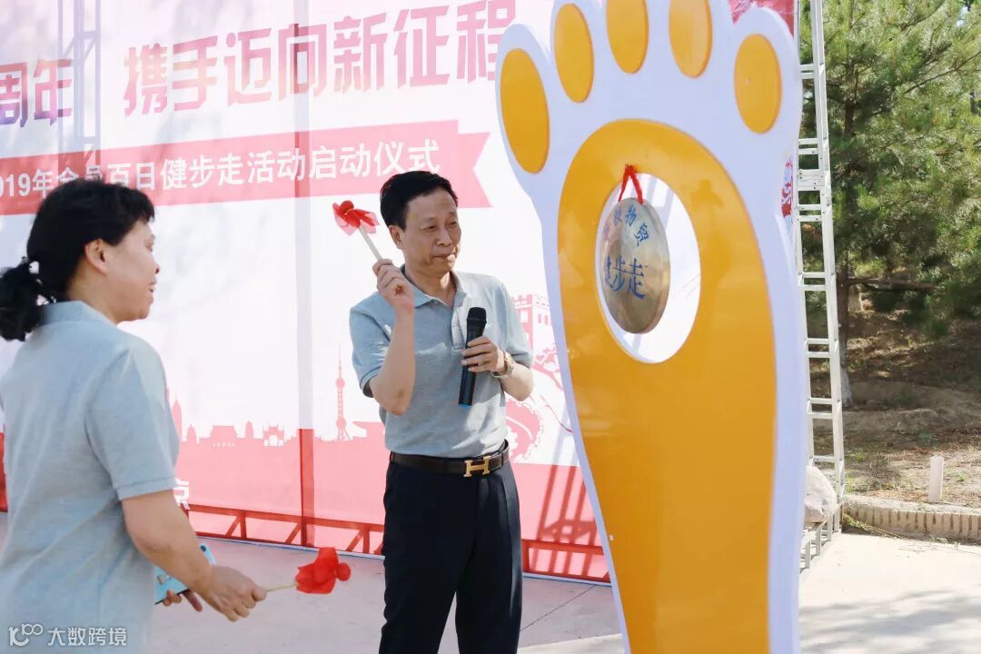 领导“敲锣”开启健步走活动