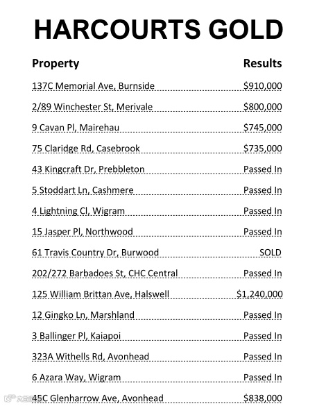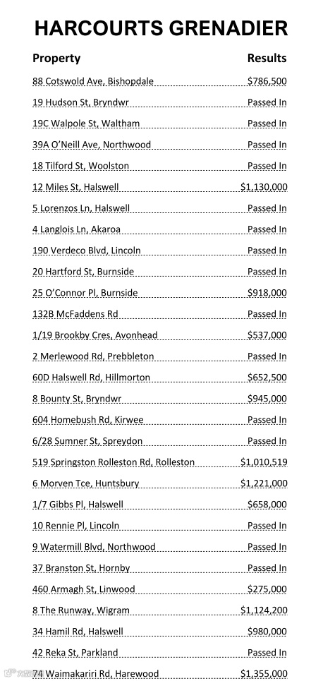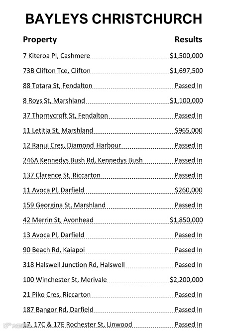 以上数据仅为 Harcourts Gold、Harcourts Grenadier和 Bayleys Christchurch 公布的Auction Results(拍卖时间为20/2)。数据持续更新,敬请期待!如果您想了解更多信息或是以上房产价格,请后台私信我们,谢谢!