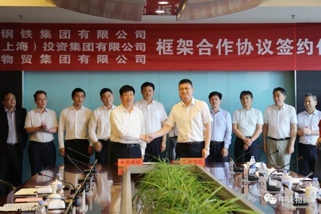 5月27日,中铁物贸与中天钢铁框架合作协议签约仪式在常州举行。中铁(上海)投资集团总经理谢大鹏,中铁物贸集团副总经理王勇周,中天钢铁集团董事局主席、总裁董才平,执行董事、副总裁周国全,副总裁董力源等出席签约仪式。