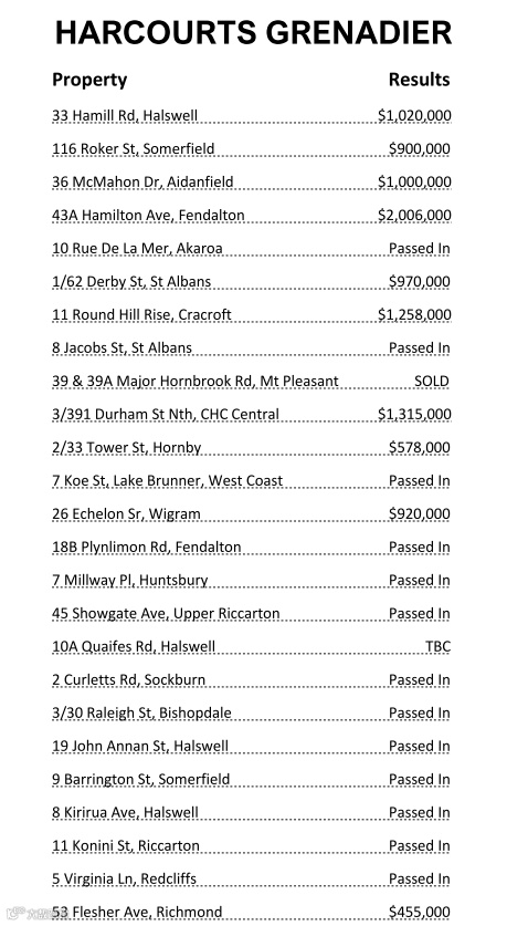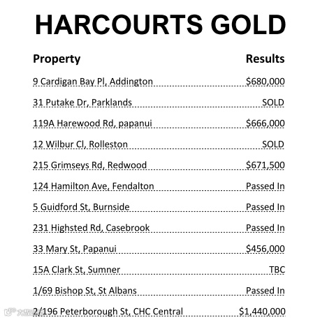 以上数据仅为Harcourts Gold、Harcourts Grenadier 和 Bayleys Christchurch 公布的Auction Results(拍卖时间为30/5)。数据持续更新,敬请期待!如果您想了解更多信息或是以上房产价格,请后台私信我们,谢谢!