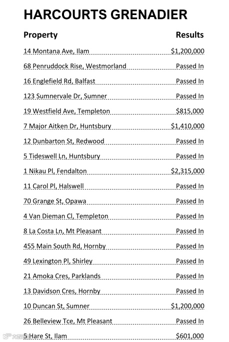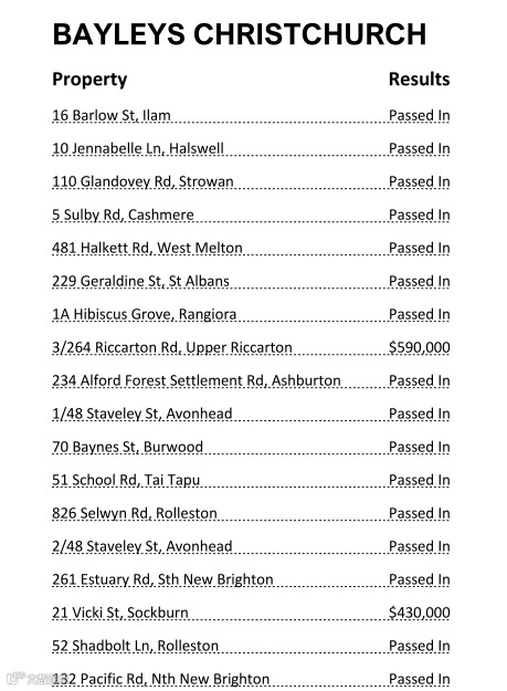 以上数据仅为 Harcourts Grenadier 和 Bayleys Christchurch 公布的Auction Results(拍卖时间为28/3)。数据持续更新,敬请期待!如果您想了解更多信息或是以上房产价格,请后台私信我们,谢谢!