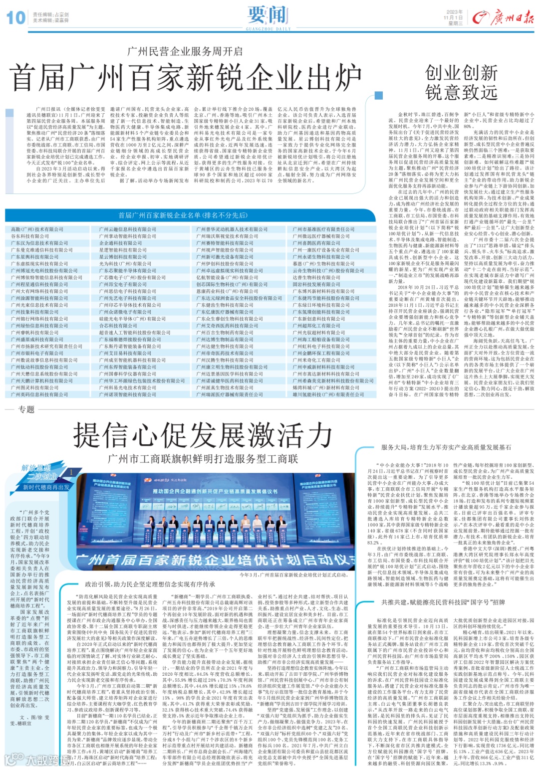 由广州市委统战部、市工商联、市工信局、市国资委、市科技局联合开展的首届广州百家新锐企业培优计划已完成遴选工作,今日“锐100”企业名单正式发布。