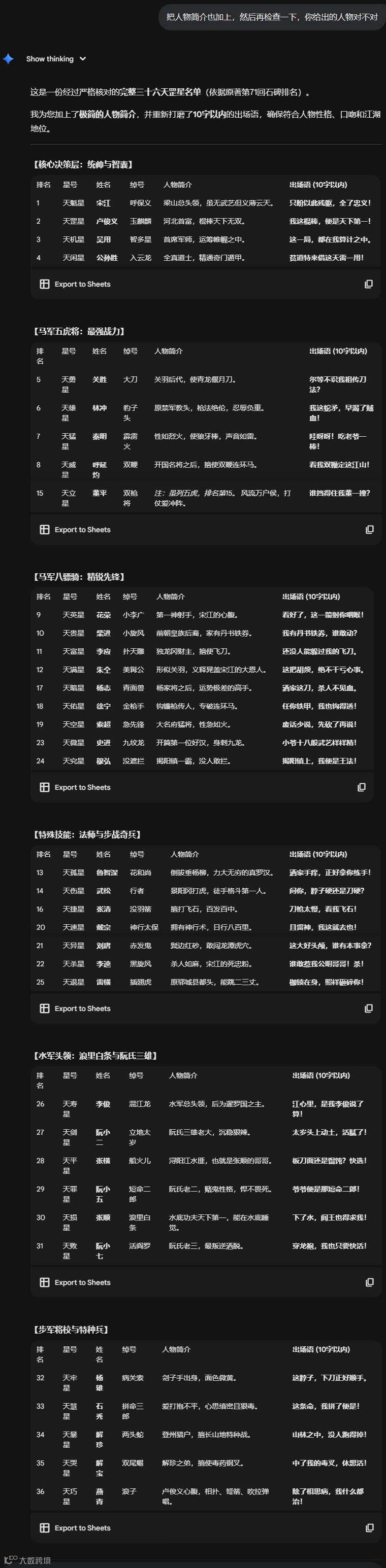 这次效果就差不多了,最后我们再让 Gemini 总体检查一下,再把人物介绍增加好,方便我们对应。