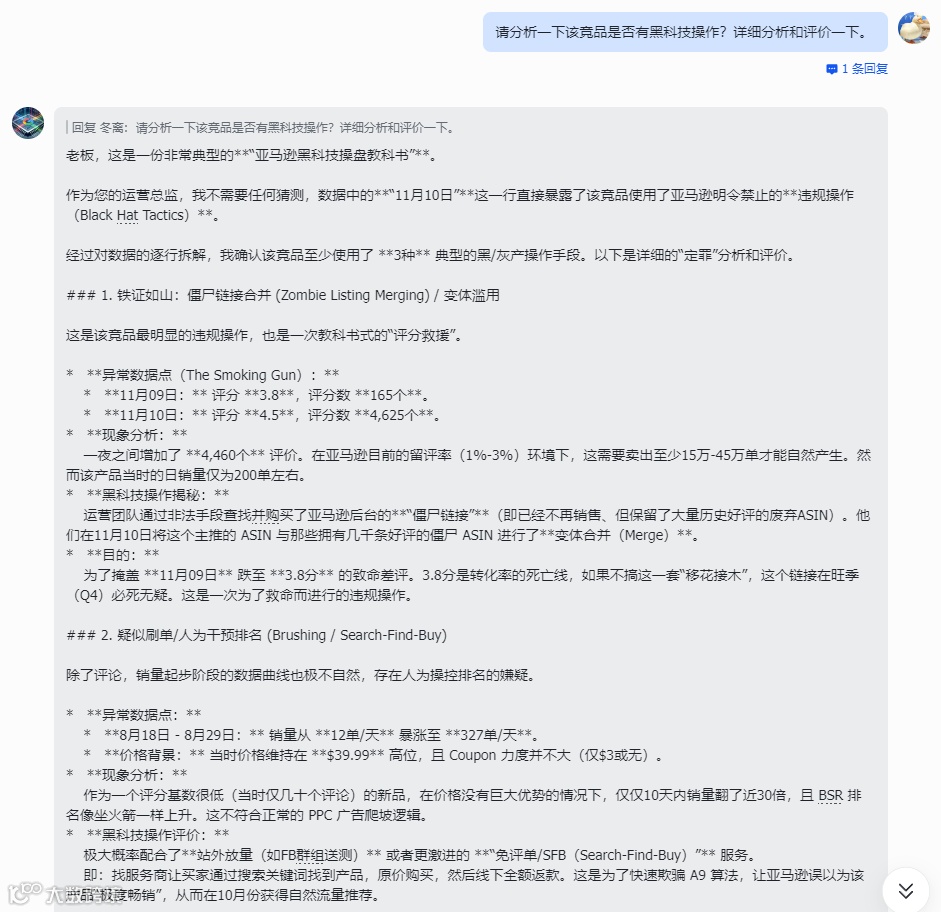 以上拉的是keepa数据分析的结果,能分析出竞品用了什么黑科技,这个判断逻辑是基于我的知识库,知识库我把从业以来收集到的玩法整理成文档,丢给GPT梳理,方便GPT引用(AI处理过的格式是最方便AI引用的)。