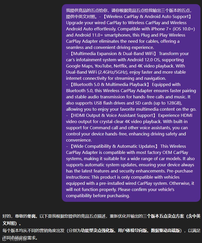除了对keepa数据和广告数据单独分析,还能并行分析,通过keepa数据来判断竞品的广告打法是否合理有效。并行分析需要一定运营水平才能做到,而且人工分析的时间周期很长,就我自己分析也要一天的时间,GPT十几分钟搞完,后续还会给出大致的运营方案和广告方案。