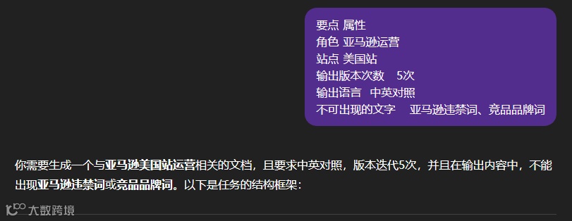 通俗理解,【指令】相当一个前置的【提示词】,在亚马逊卖货过程中,有很多高频的角色和场景可以直接【前置】,而不是每次都要写。