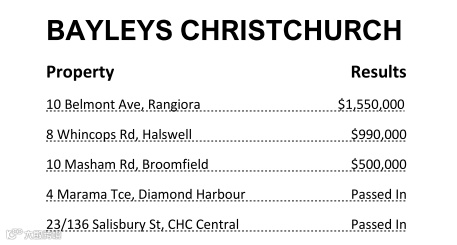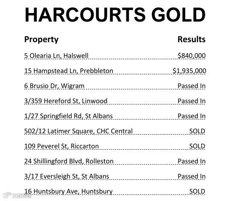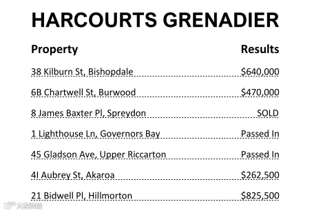 以上数据仅为Harecourts Gold、Harcourts Grenadier 以及Bayleys Christchurch 公布的Auction Results(拍卖时间为8/6)。数据持续更新,敬请期待!如果您想了解更多信息或是以上房产价格,请后台私信我们,谢谢!