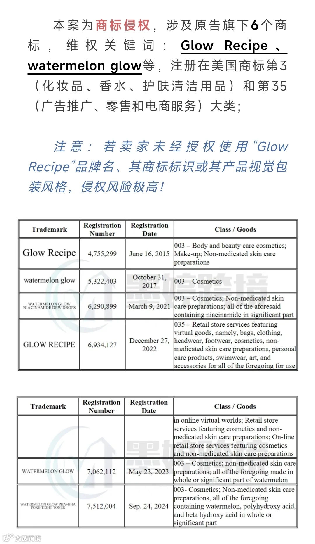 我们汇总了11月28日~12月1日发案的TRO侵权案件,建议卖家朋友们做好侵权预防,排查店铺,下架相关商品,及时提出资金,以免店铺资金受损!以下为列举出来的部分案件详细情况。