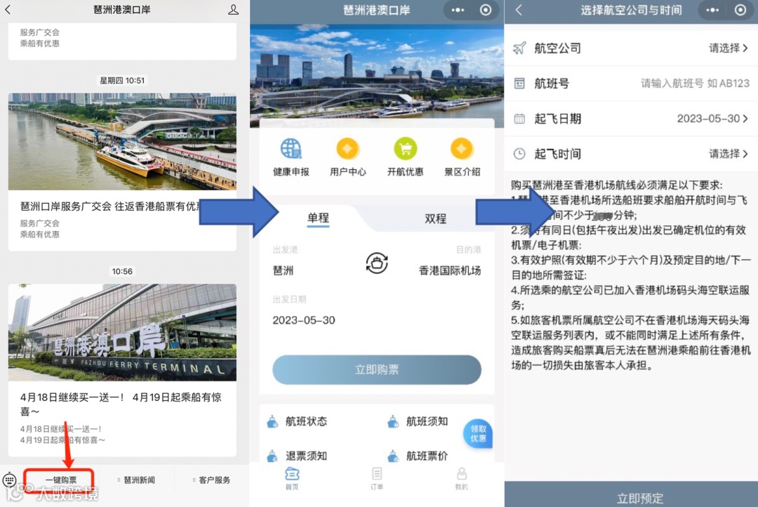 购买琶洲港(PFT)至香港机场航线必须满足以下要求: