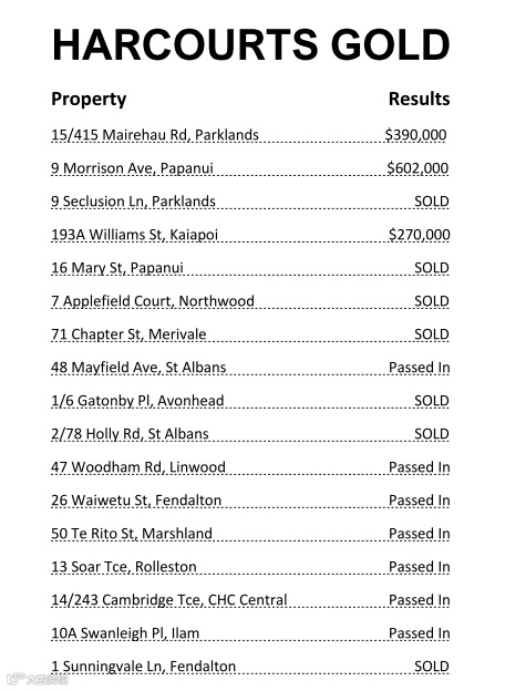 以上数据仅为 Harcourts Gold、Harcourts Grenadier 以及Bayleys Christchurch 公布的Auction Results(拍卖时间为 9/3)。数据持续更新,敬请期待!如果您想了解更多信息或是以上房产价格,请后台私信我们,谢谢!