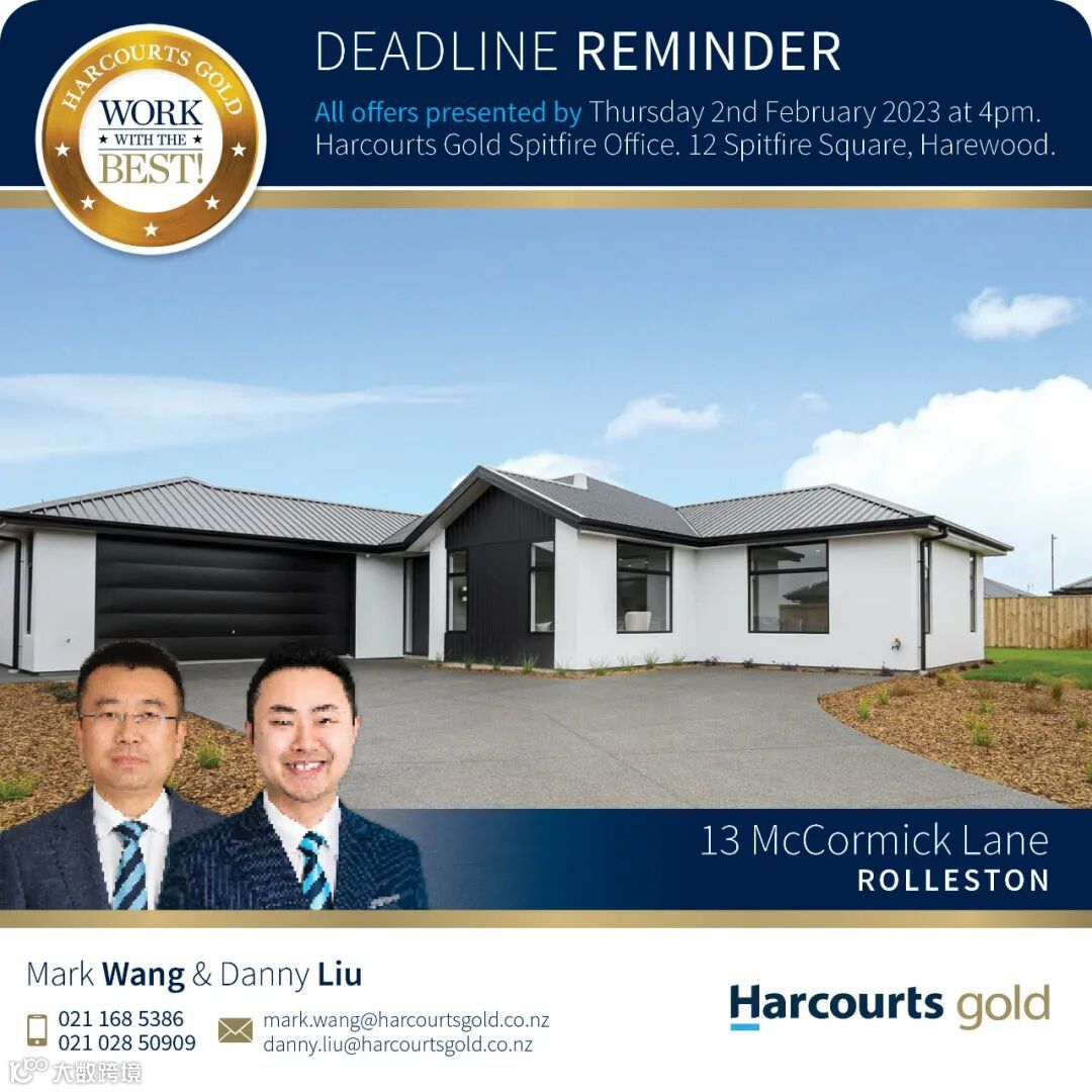 【限期出价邀请】Rolleston 全新高质5房大宅,这周四前限期出价