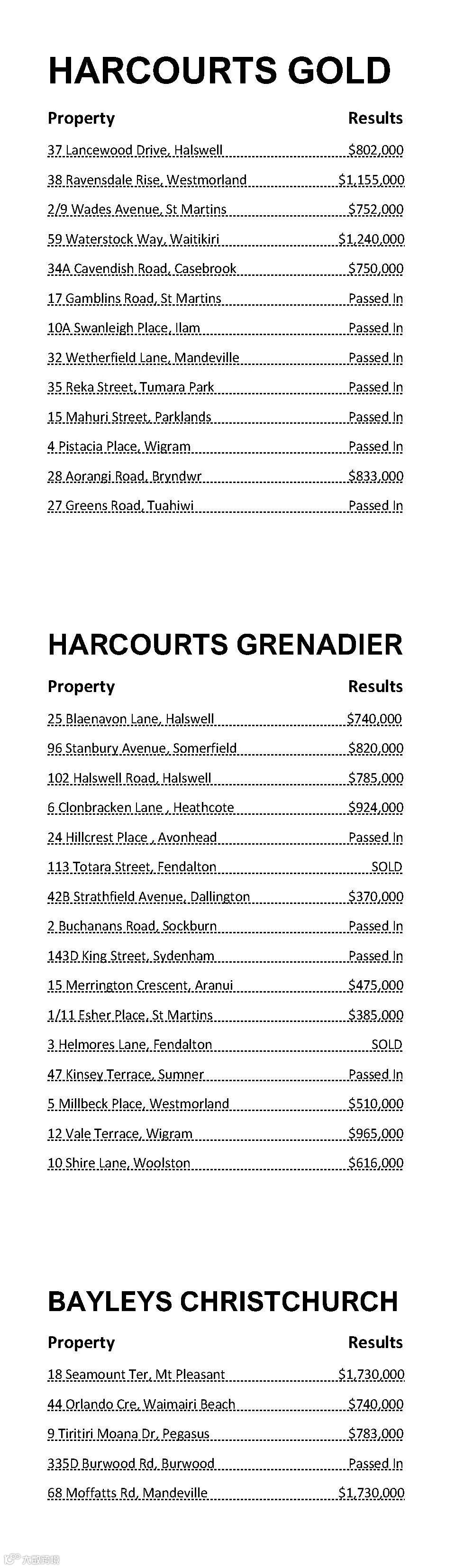 以上数据仅为 Harcourts Gold、Harcourts Grenadier 以及Bayleys Christchurch 公布的Auction Results(拍卖时间为 6/10)。数据持续更新,敬请期待!如果您想了解更多信息或是以上房产价格,请后台私信我们,谢谢!