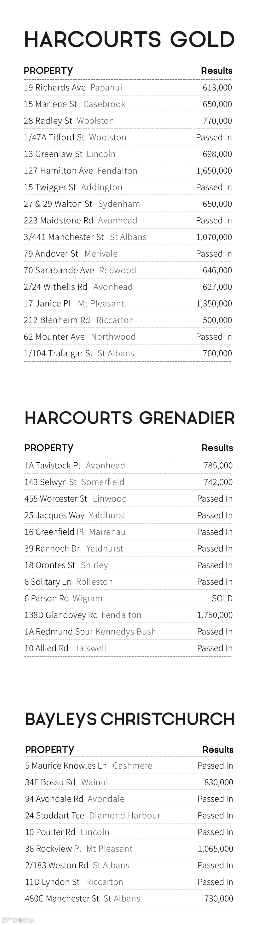 以上数据仅为 Harcourts Gold、Harcourts Grenadier 以及 Bayleys Christchurch 公布的Auction Results(拍卖时间为 30/6)。数据持续更新,敬请期待!如果您想了解更多信息或是以上房产价格,请后台私信我们,谢谢!