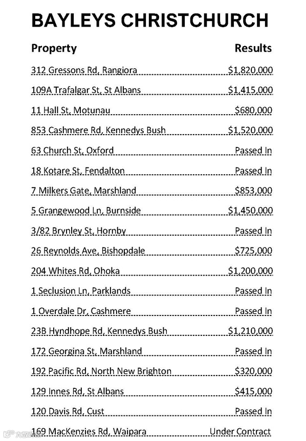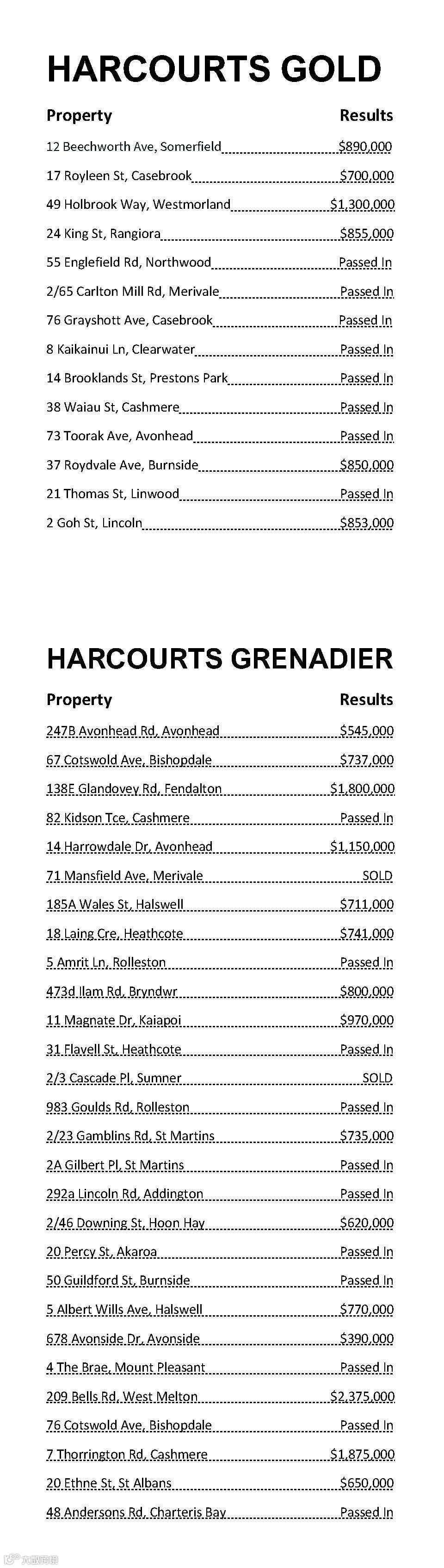 以上数据仅为 Harcourts Gold、Harcourts Grenadier 以及Bayleys Christchurch 公布的Auction Results(拍卖时间为 17/11)。数据持续更新,敬请期待!如果您想了解更多信息或是以上房产价格,请后台私信我们,谢谢!