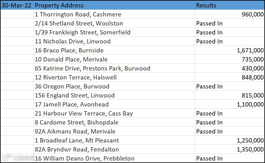 以上数据仅为 Harcourts Holmwood 以及 Harcourts Four Seasons 公布的Auction Results(拍卖时间为30/3)。数据持续更新,敬请期待!