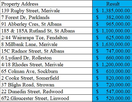 以上数据仅为Harcourts公布的其中位于基督城的三家分部的Auction Results(拍卖时间为28/06-02/7)。数据持续更新,敬请期待!