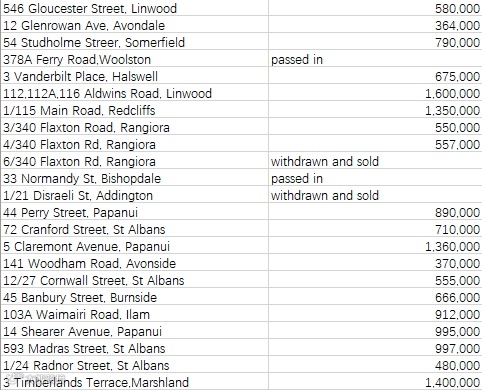 以上数据仅为Harcourts公布的其中位于基督城的三家分部的Auction Results(拍卖时间为9-13/08)。数据持续更新,敬请期待!