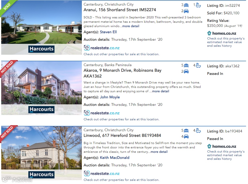 Interest.co.nz在9月14日至20日这一周内监测到了全国313个住宅物业拍卖。与此前一周(9月7日至13日)监测的222件拍卖相比,这一数字增长了41%,与去年(2019年9月18日至24日)同期相比增长了79%,当时该网站仅监测了175套拍卖。