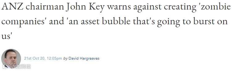 ANZ 董事长John Key警告称,有可能出现“僵尸公司”,以及“未来将在我们身上破裂的资产泡沫”。