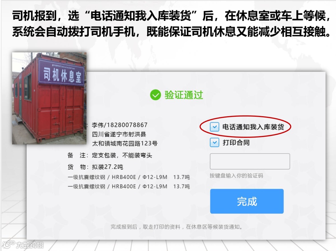 4.调度人员可以在 8 小时工作时间内提前为每辆车安排好多单任务,系统感知到车辆返回特定区域后自动派发下一单。如果有异常,调度人员可以用手机调整。既能避免调度人员长时间加班,也能防止司机提前看到任务挑肥拣瘦。