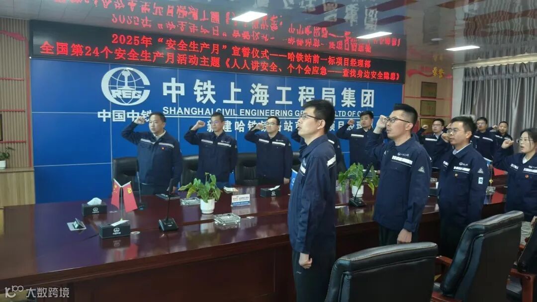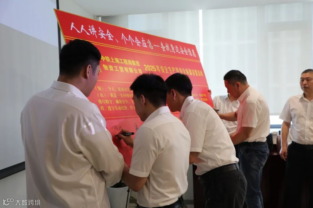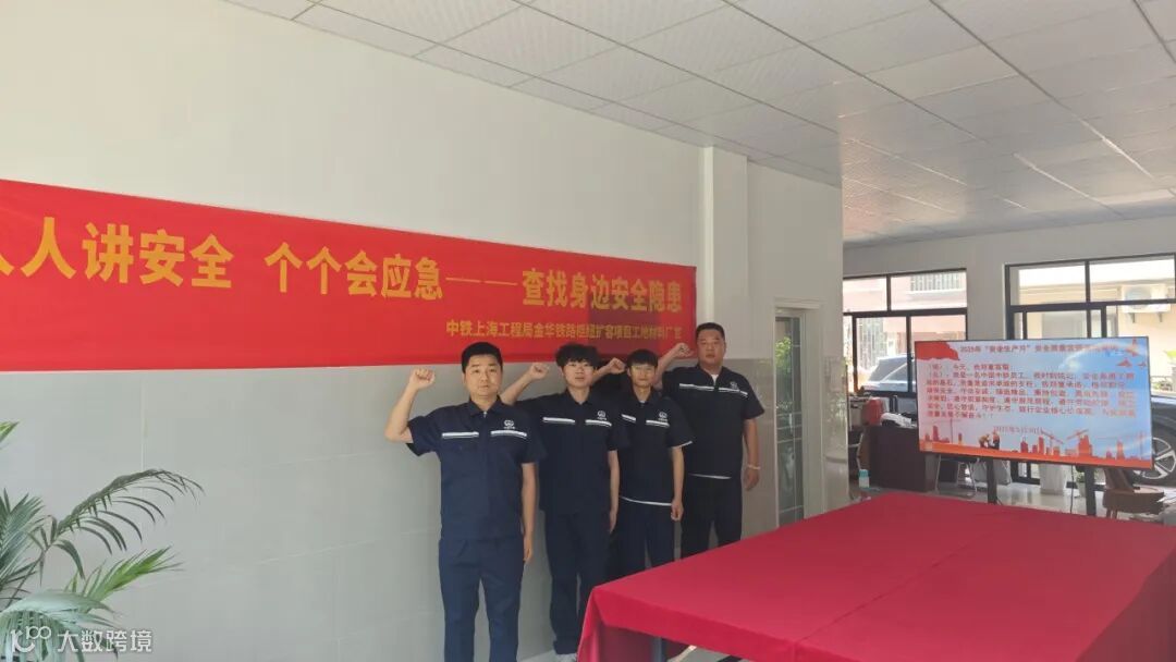 在全国第24个安全生产月到来之际,根据股份公司统一部署,5月30日上午9时整,物贸公司本部及事业部在沪全体职工在四楼会议室和一楼大厅进行了“安全生产月”宣誓活动。同一时间,各铁路项目工地材料厂、事业部生产加工基地在各自工作场所集中进行了庄严宣誓。视频宣誓结束后,四楼参会人员集中观看了《“安全生产月”主题宣传片》。